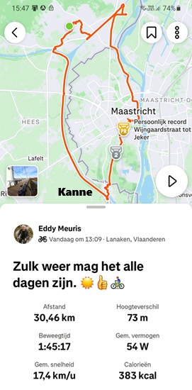 In Lanaken dronk ik mij nog ene warme cécémel, dadelijk mij wat opfrissen en we kunnen met ons twee de avond volmaken. En de fiets, .... die was piep-vrij.