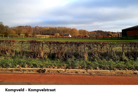 Maar dus die wandeling, ik ben nog eens naar Kompveld gestapt. Eerst wandelde ik voorbij het voormalige college. Het tempo ligt er vrij hoog om al dat puin weggevoerd te krijgen. Ze zijn zelfs al bezig om 'n vrijliggend stuk te egaliseren. De nieuwe school willen ze rap als mogelijk heropbouwen.