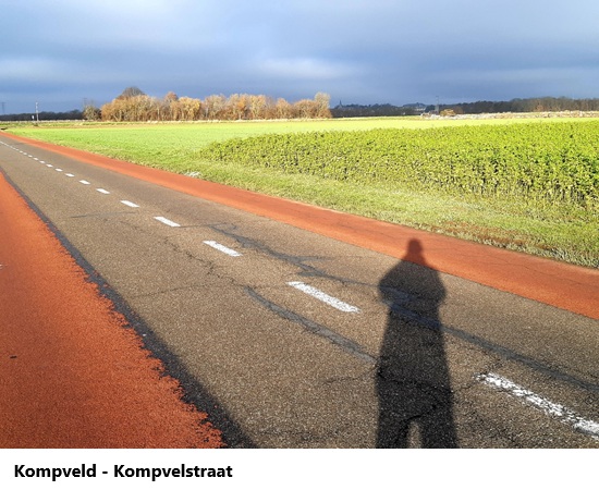 Daarna wandelde ik via de Kiezelweg richting Veldwezelt om vervolgens rechts de Kompveldstraat te nemen. Je bent dan in Kompveld, 'n gehucht van Gellik. Door de zon heb ik er enkele interessante foto's kunnen nemen. Via de Wijerdijk in Gellik, nam ik de klim naar de kerk om dan doorheen de Kerkstraat terug naar huis te keren.