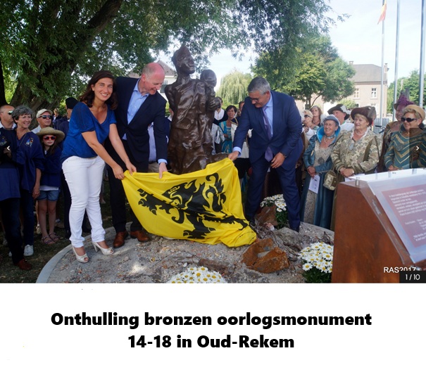 Vooreerst passeerde ik Rekem en dat bronzen oorlogsmonument. Het werd onthuld in 2017 door burgemeester Marino Keulen, Zuhal Demir (toen staatsecretaris) en Steven Vandeput (toen minister). Het stelt enkele soldaten voor en al het leed in de loopgraven aan de Ijzer tijdens WO I en rechtopstaande, Rekemenaar Frans Kuster. Hij was brancardier en sneuvelde in augustus 1917.