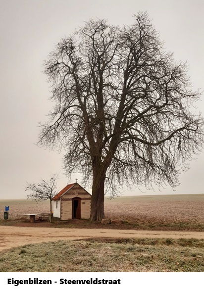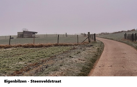 Dat het koud was, zag ik op mijn GSM, - 1° in Eigenbilzen, je zag het ook aan het landschap. In Veldwezelt stak ik de grote weg over om wat verderop te verdwalen in de wijken van Veldwezelt. Sommige straten lopen dood Meuris. Ik had het moeten weten ...