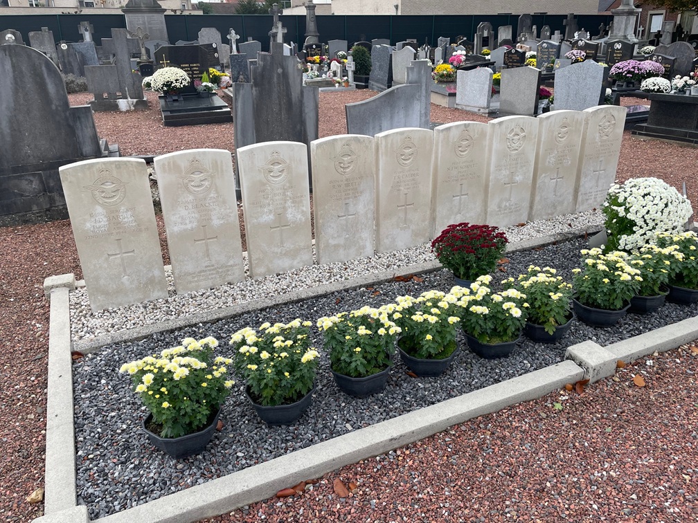 Allerheiligen en Allerzielen zijn dagen waarop we denken aan allen die ons ontvielen. Wandelend over het Oude Kerkhof in ons dorp Lanklaar bezocht ik - na de graven van familieleden - ook het graf waarin 9 bemanningsleden rusten, overleden bij 2 vliegtuigcrashes in 1944.