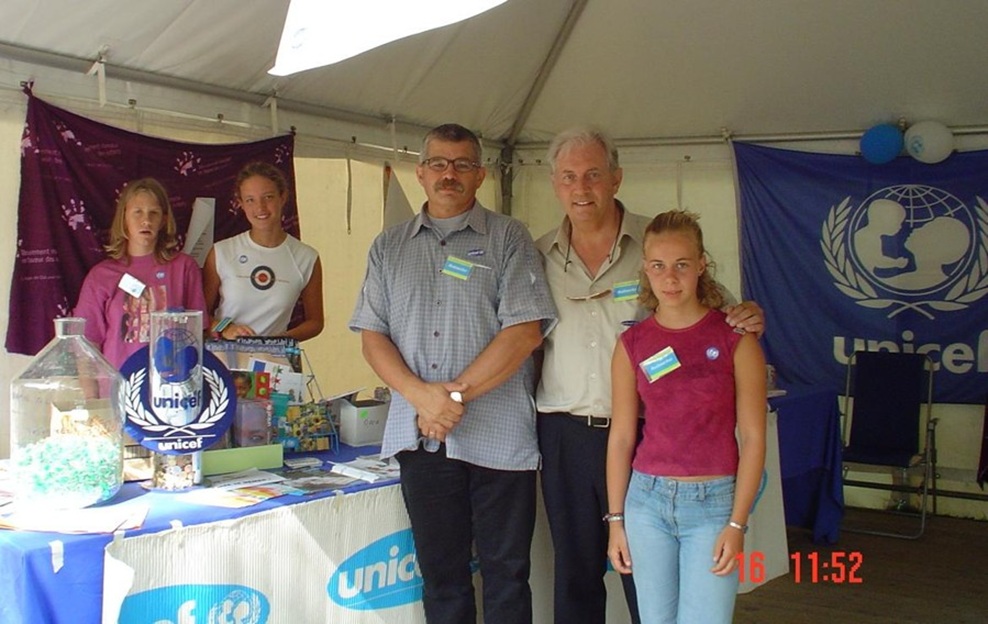We werken verder aan de presentatie. En... in de geschiedenis van ons project zijn er uiteraard beelden van ogenblikken waarop we ons inzetten voor jongeren , via UNICEF!