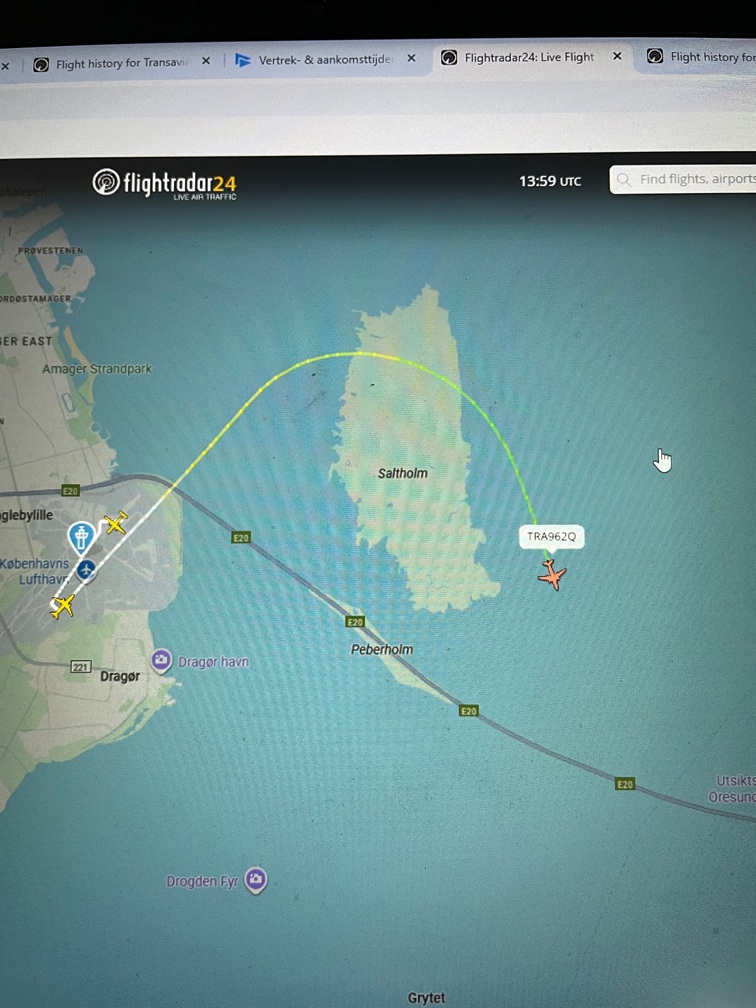 En intussen volgen we kleinzoon Thibault via Flightradar 24 , die met het vliegtuig terugkeert uit Kopenhagen. Dat , na een bezoek aan een collega-student, met mooie overtocht naar het Zweedse Malmö !