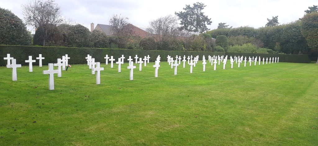 Na de middag fietsen we naar Waregem waar we kort halt houden aan de Amerikaanse militaire begraafplaats, passeren de paardenrenbaan, rijden door het centrum naar de fietsostrade. We rijden tot aan het station van Zulte om dan door te steken naar Kruishoutem.