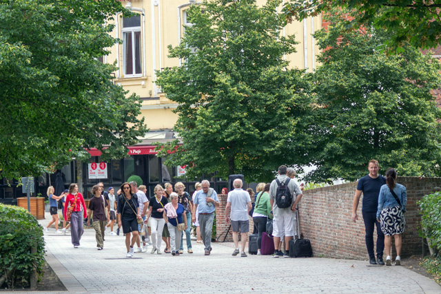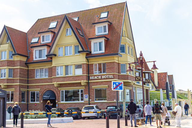 In het 1ste deel wandel je in de zon, onbeschermd, met aan de rechter zijde de achterkant van vele hotels.