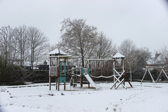 Even verderop ontdek je, verscholen tussen bomen, een ijspiste. Zelden heb ik er een schaatser of schaatsers gezien ... zuivere energie verspilling.