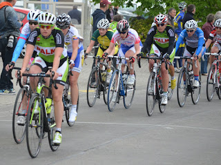 46 meisjes stonden aan de start en wanneer er na twee ronden werden er nog een paar werden geëlimineerd werd het peloton wel erg compact. Ik lag er deze keer gelukkig niet bij, helaas stond ik er wel achter. Te voet. Laat ze net op dat moment beginnen koersen, dan is't snel gedaan. De eerlijkheid gebied mij ook wel te zeggen dat ik eigenlijk niet 100% gerecupereerd was van zaterdag. Mijn luchtwegen lieten het even serieus afweten...