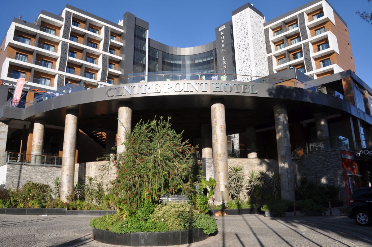 Aangezien de Turkse Republiek Noord-Cyprus "niet bestaat" kan er officieel ook geen vliegtuig heen vliegen. Officieel vliegen we dus naar het Turkse Antalya, waar weliswaar niemand uitstapt, maar het verboden woord "luchthaven Ercan" wordt officieel gelukkig nergens vermeld. We sluiten ook een foto bij van de vlucht over de Alpen, van het avondlijke vertrek vanuit Antalya, en van ons Freebird Airlines-vliegtuig na de eindlanding in Ercan, nabij de verdeelde hoofdstad Lefkosa. Daarna kwam nog de busrit naar Gazimagusa ofte simpelweg Magusa (het vroegere Famagusta) en de kennismaking met onze gidse Guldal en onze chauffeur meneer Selcuk, en een eerste buffet-diner in ons Novel Centre Point Hotel waar we alvast drie nachten zullen verblijven.
