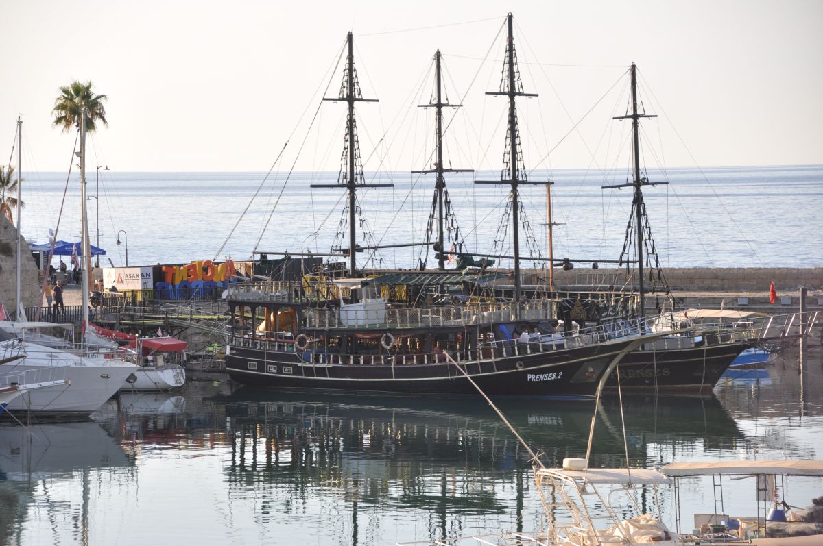 Aangezien de Turkse Republiek Noord-Cyprus "niet bestaat" kan er officieel ook geen vliegtuig heen vliegen. Officieel vliegen we dus naar het Turkse Antalya, waar weliswaar niemand uitstapt, maar het verboden woord "luchthaven Ercan" wordt officieel gelukkig nergens vermeld. We sluiten ook een foto bij van de vlucht over de Alpen, van het avondlijke vertrek vanuit Antalya, en van ons Freebird Airlines-vliegtuig na de eindlanding in Ercan, nabij de verdeelde hoofdstad Lefkosa. Daarna kwam nog de busrit naar Gazimagusa ofte simpelweg Magusa (het vroegere Famagusta) en de kennismaking met onze gidse Guldal en onze chauffeur meneer Selcuk, en een eerste buffet-diner in ons Novel Centre Point Hotel waar we alvast drie nachten zullen verblijven.