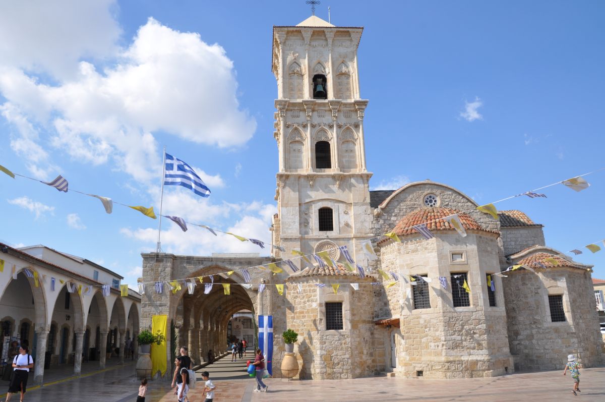 De daguitstap van vandaag voerde ons naar de Republiek Cyprus, waar we eerst het Sint-Thekla-nonnenklooster bezochten en dan, naast een zoutmeer, de Hala Sultan-moskee, waar de voedstertante van de Profeet Mohammed begraven zou liggen. In de stad Larnaka (let ook op de officiële Cypriotische vlag) ligt de rijkelijk versierde Sint-Lazaruskerk (jaja, dezelfde Lazarus die na vier dagen dood te zijn geweest door Jezus Christus weer tot leven gewekt was is hier later bisschop geworden), en we bezochten tevens de kruisriddersburcht waar ook de latere graven van Vlaanderen (de Dampierres) hun steentje aan bijdroegen. Verder heeft Larnaka een echt druk zandstrand, een wandeldijk, een jachthaven, ...