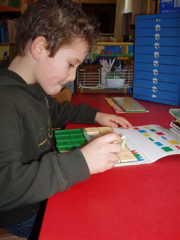 Dit is vooral een goede oefening op visuele waarneming ,concentratie , ruimtelijk inzicht en zelfcontrole. Sommige kinderen maken hier fouten met de cijfers 6 en 9 Als ze dan hun doosje omdraaien..... ja.....dan hebben ze pech