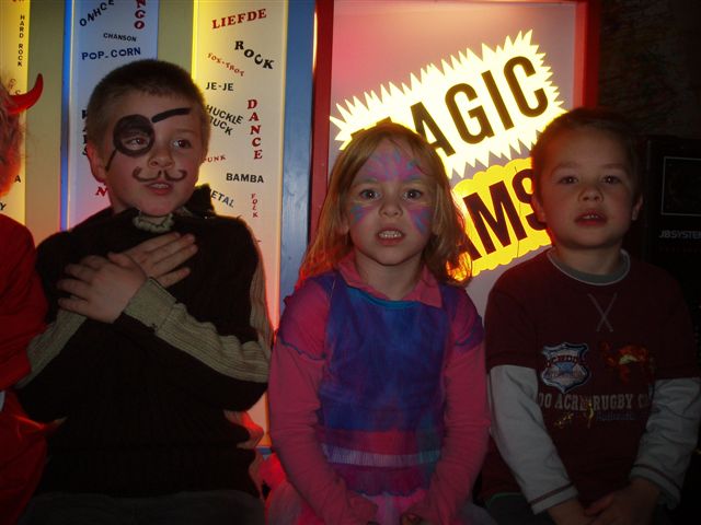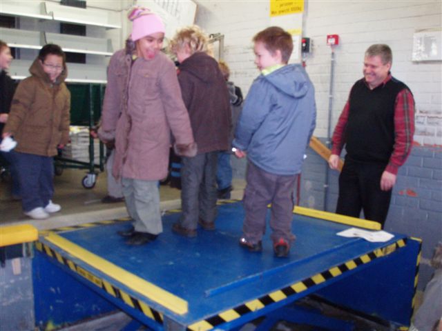 Daarna mochten wij een kijkje nemen achter de schermen. Met een lift werden de kindjes een verdieping hoger gebracht.... de sfeer zat er al goed in....