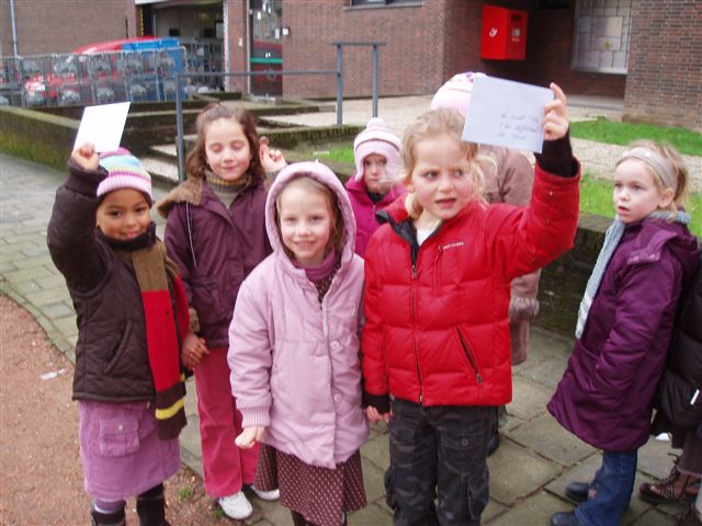 na het luisteren weer even tijd voor dolle pret. De kleuters mochten even achter het stuur van een postauto zitten en.......tuuuuuuuuuttttttttt...... Er werd ook eens gekeken naar de andere voertuigen die een postbode heeft