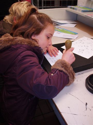 nu worden de brieven met een machine afgestempeld........ maar onze kinderen mochten het nog eens op de oude manier doen. Onze brieven die wij mee hadden werden keurig afgestempeld.