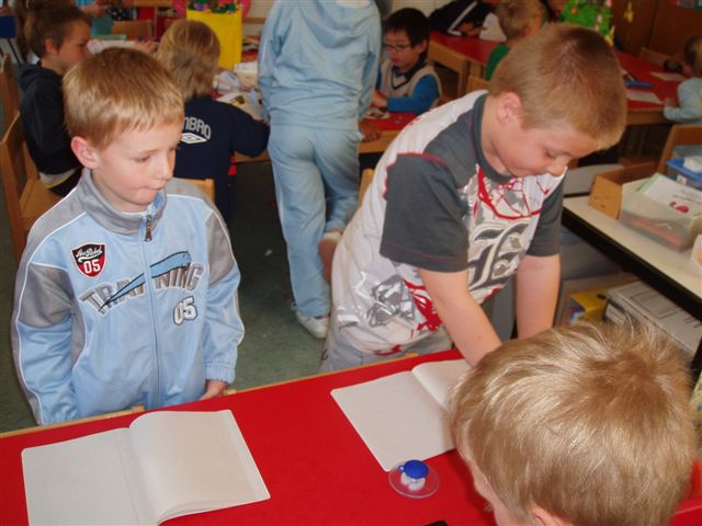 Deze morgen begon de juf met het vertellen van een boekje. Aanleiding was de eerste zwemles. Juf wou aantonen dat sommige kinderen nog een beetje bang zijn van het water en dat de andere kinderen daar rekening mee moeten houden. Iedereen heeft zijn mogelijkheden.....Na het verhaal kwamen de tongen los.. Juf, ik ben eigenlijk ook wel een beetje bang, ik druf nog niet goed te springen in het water, mag ik je hand vasthouden, enz......