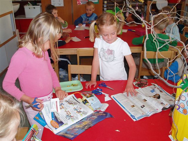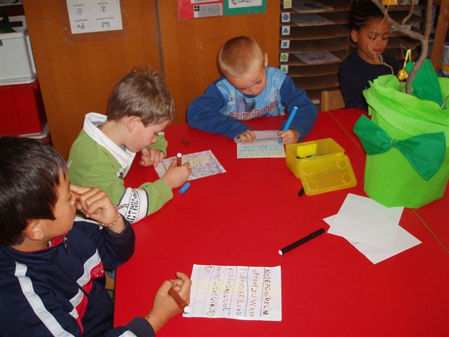 Een ander groepje was dan de kaft aan het maken voor het letterboekje. Aan de kaft moet je wel zien dat dit boekje over letters gaat dus wat komt er op de kaft ?????