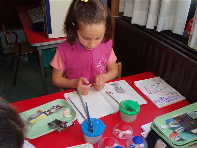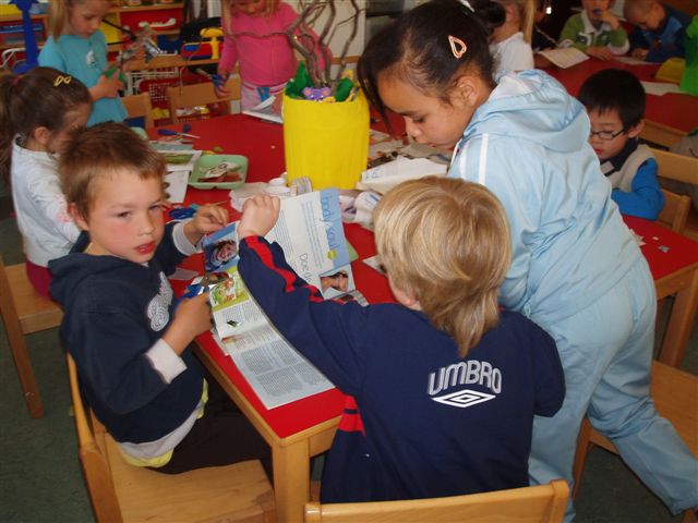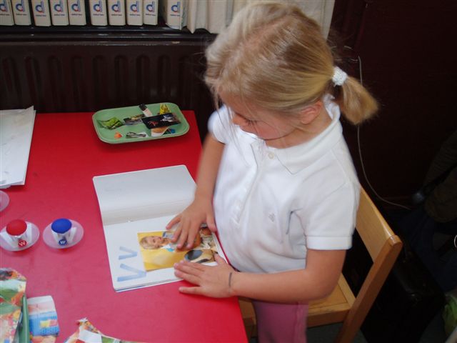wie klaar was met de 3 opdrachten kon een stapje verder gaan. Benoem je prentjes en probeer ze bij de juiste beginletter te kleven. Blader in je boekje en zoek de beginletter van je prent Gevonden? Dan mag je de prent opkleven.