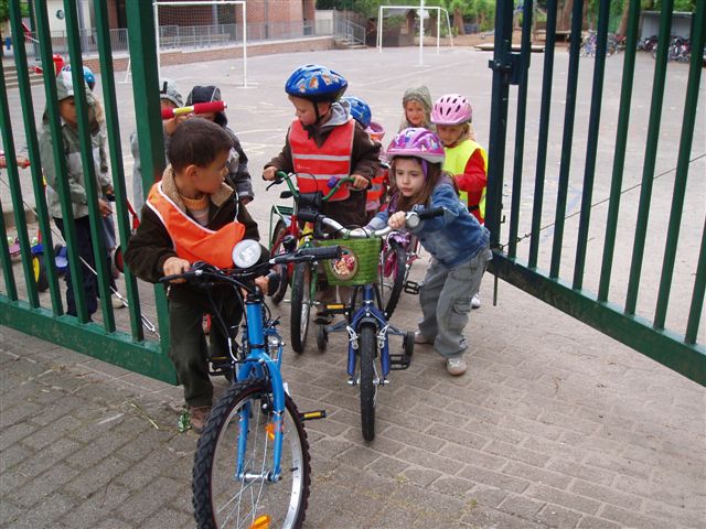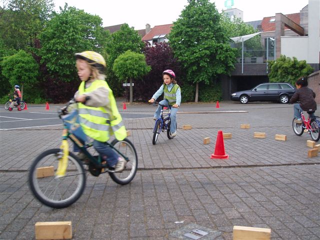 voor we onze fiets aan de kant moesten zetten mochten we naar een paar keer rond de speelplaats rijden Jammer van jet weer Maar... we hebben toch gefietst