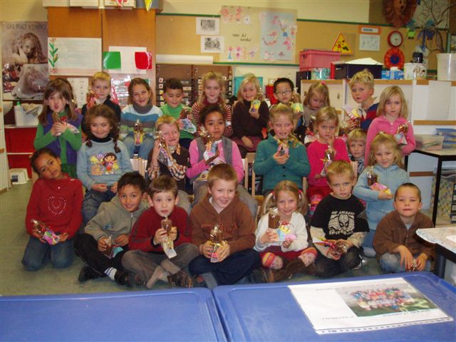 Dinsdag 19 december. David was apentrots om zijn kleine zus Lucca voor te stellen aan zijn vriendjes van de klas. De rakkers deden natuurlijk weer eens hun best om een prachtig geschenk te maken voor de kleine spruit. Ja mama van Lara ....jij bent de volgende (kan voor alle dagen zijn...laat ons hopen nog voor dit jaar?....) Je weet al wat er jou te wachten staat (iedereen gelijk voor de wet)....wat wij al weten is dat het bij Lara eens geen zusje zal zijn...(het andere geslacht moet ook eens opkomen he)