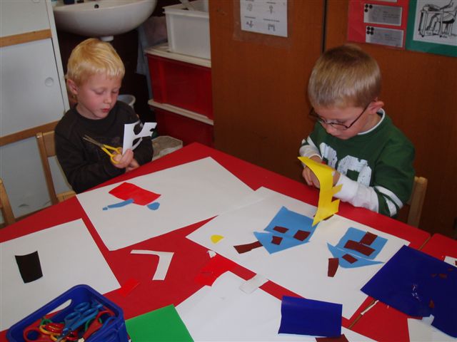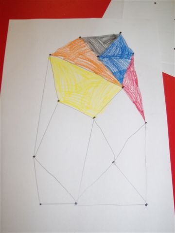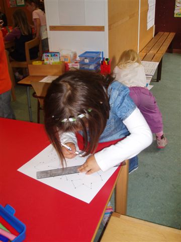 Een ander groepje kreeg een oefening op fijne motoriek en schrijftechniek Teken stippen op je blad Nu moesten ze alle stippen met elkaar verbinden door een lat te gebruiken kleur nu de vakjes in en maak er een mooi kunstwerk van