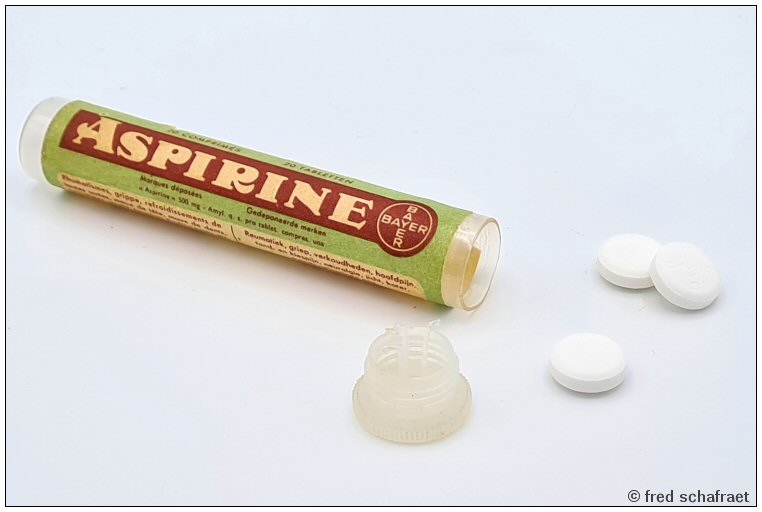 Voor hoofdpijn en kleine ongemakken nam men de vertrouwde aspirine tabletjes. Naast het "poeierke" van Dokter Mann en Aspro waren dit de meest genomen pijnstillers.