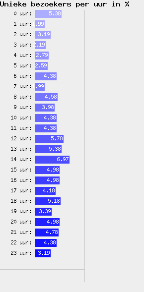 De cijfers worden per dag, week en maand opgegeven, zowel grafisch als de cijfers. Uitgebreide cijfers zijn ook te exporteren naar CSV voor eigen verwerking in bvb. Excel.