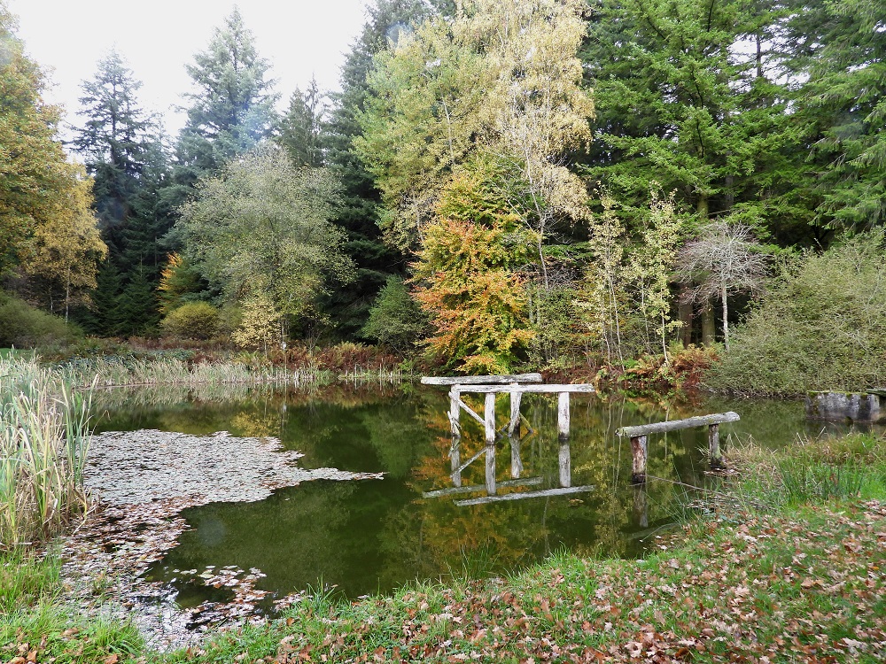 Ik weet nu ook wel dat ik er niet al te "snel" meer op sta , maar om mij nu te vergelijken met een vogelverschrikker ? Maar allee , hij zei het wel op een vriendelijke manier , dat is ook al iets . Op de volgende foto , de poel in hun tuin met aan beide zijden een gespannen net , bijna niet te zien , maar dat is de bedoeling .