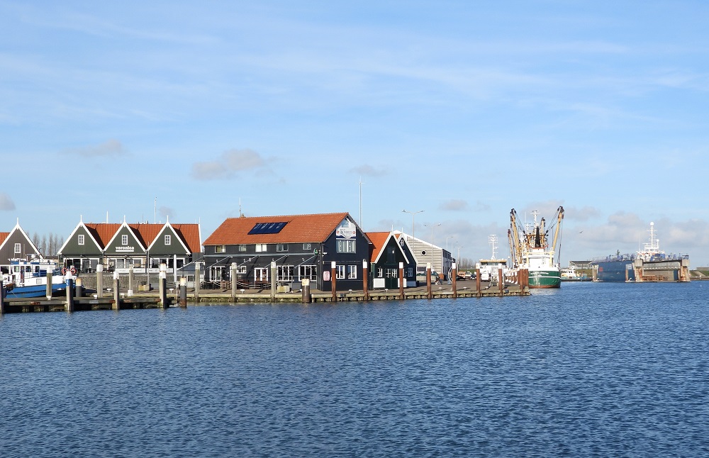 Het dorp Oudenschild ligt volledig achter de dijk , bij een haven lukt dat natuurlijk niet en hier is er zelfs één Hotel in de haven dat voor de dijk ligt. De windmolen hebben ze achter de dijk gezet .