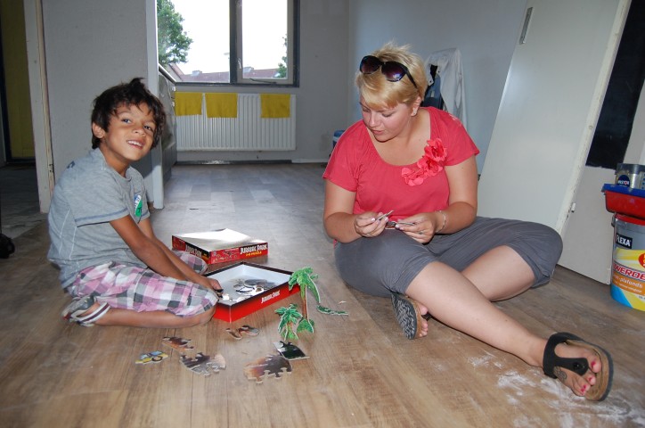 En weer was ik mee naar Wijchen Vrienden van facebook kwamen Michelle verwennen een bed voor Glenn, een klok, kastje, puzzels Gasfornuis voor Michelle, lampjes etc. Gemma en Lessie waren dol op Glenn Deze genoot optimaal van zijn Dino puzzels die ze ook mee brachten en hem leerden maken Toen kwamen Hetty en Anre ook nog eens en als klap op de vuurpijl Hun aller eerste egeltje en een kikker.