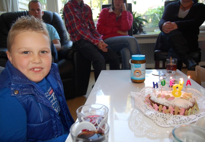 Stan was jarig en hij wilde graag dat ik kwam! natuurlijk maakt mij dat blij en dus Esther gebeld en die kwam mij met Floris halen Snel een beschilderd doosje ingepakt Vanmiddag was voor mij als een warme douche wat een liefde onderling en wat was ik welkom Tja, met mijn foto tik kwam dat ook weer goed van pas dit keer maakte ik er 250 en ben de hele avond ermee doende geweest ze wat bij te werken en nadien te vermailen Na afloop werd ik door Jeroen de vader van Stan en Ben naar huis gebracht fijn gesprek leverde ook dat weer op ik glunder nog steeds