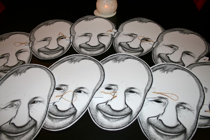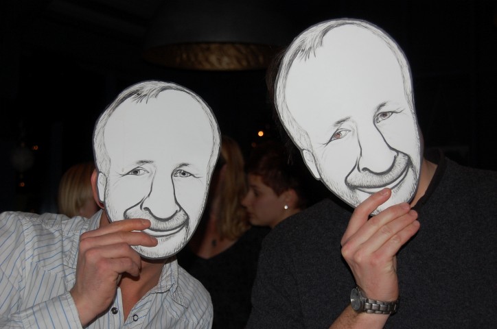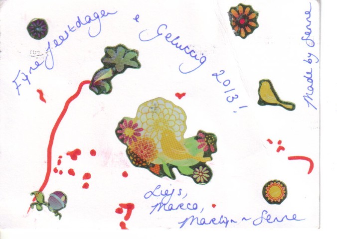 de eerste echte kerstkaart van Senne foto via Oberhausen ontvangen leuk he! en de vader van onze Marlijn is vandaag 60 jaar geworden Hij denkt gezellig met zijn kinderen te gaan bowlen Maar onderweg in de auto krijgt hij een blinddoek om Ineens staat hij midden in een grote feestzaal met tachtig man zijn vrienden en familie die dragen allemaal onderstaand masker welke MP heeft gemaakt voor ons Ikzelf ga met de Miesjes er tegen half acht heen eerst natuurlijk afwachten of Glenn al wat beter is en naar zijn oppas adresje kan Ik ga in het huis van Opa op Senne passen om beurten met MP ook al ziekjes nu erge keelpijn jammer, maar helaaas desondansk verheug ik mij wat zal Ad blij zijn heerlijk! en bedenk mij 3 april zelf ook 60jr te zullen gaan worden hihi sssssst