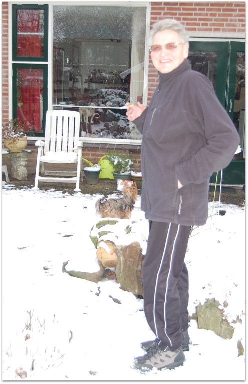 Ans op haar scooter Net hersteld van een grote operatie toch snel even naar Kaatje toe fijn die moeite en blij dat het weer een stuk beter met haar gaat