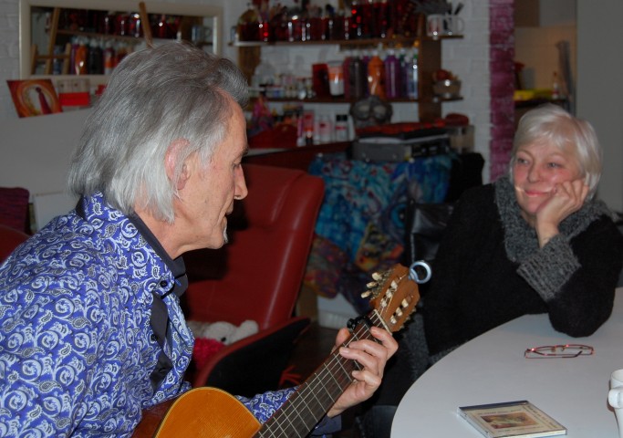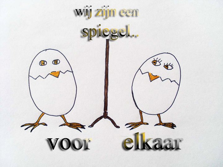 En ineens sta je dan weer alleen in de tuindeur met je sigaretje kijk je terug op een mooie dag, zoals Bert schreef een écht DDay Het Universum zorgt Het werd laat en ik ging tegen 3 uur mijn bed in Vanmorgen met Wilma al vroeg in de weer Herorganisatie van het huis stap voor stap weer doorgaan Omdat ik van Aino een Vitametik behandeling kreeg gister, werd ik wakker met mijn gehoor welk weer terug was gekomen! Te veel energie had ik de weken hiervoor laten opslurpen, zonder mij hiervoor af te sluiten. waardevolle weken, desondanks. Vandaag wilde ik de boodschappen doen. Witje kon ik aantrekken als in een wonder dit mag nl niet met vorst dus huppah heerlijk rondgetuft met dat kleine wagentje. In gedachten mijn zusje er dit keer naast gezet en zo vol blijdschap op pad Weer een burgernet telefoontje te pakken er wordt hier erg ingebroken de laatste maanden vaak op vrijdag, apart he. Of ik..of de buurvrouw.. we krijgen dan een belletje van een onbekende beller via mobiel, met een buitenlands accent er wordt dus gekeken of wij thuis zijn Vaak tegen bedtijd dat de dieren knetter wild worden en dan.. jaag ik ze lekker naar achter de tuin in. Weg met die flauwekul hoor. Pak ze...roep ik dan voluit dikke pret, laat mij door niets of niemand meer bang maken MP, mijn oudste belde net vanuit Deventer Morgen mam, komen we fijn naar jou toe en wil jij even neef Jeoffrey bellen? dan gaan we met elkaar ook naar hen gedaan natuurlijk, fijn dat dit even samen kan de kleine meiskes heerlijk spelen samen eten halen en een paar uurtjes van elkaars gezelschap genieten het missen omzetten in...ik houd van jullie knuffels Het leven te dansen en blijven dansen maakt en het raakt Ook wil ik snel mijn ex schoonzusje bellen en met Micha daar op aan Fijn hen ook weer eens te zien en dan met het oude schilderij van uit de kinderjaren van mijn vader weer op huis aan maar weer zien dat staat als hoofdmoot Jammer dat het zo druk was hier, maar voor alles is een tijd ernaar toe groeien is ook belangrijk! Nu even een dikke knuffel voor Servaes, Corrie, Frank en iedereen die mij zo dierbaar is en wens jullie een fijn weekend