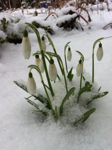 Sneeuwklokjes in de tuin meld de komst van de lente.