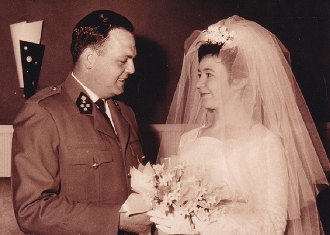 1962 – Meinummer “De Band” : Diversen -Zwaar gewond : het huisgezin van de oprustgestelde onderwijzer, de heer Selleslagh, werd andermaal zwaar getroffen. Toen de zoon, Hubert Selleslagh, lid van het Milac-comité, zich naar het werk begaf, hing het noodlot reeds boven het hoofd. In de omgeving van Brussel, indien we goed ingelicht zijn, werd hij door een voor ons onbekende oorzaak (men zegt door een verplichte bruuske remming) uit de wagen geslingerd, kwam met het hoofd op de kasseien terecht en liep hierbij een schedelbreuk op. Hij werd overgebracht naar het hospitaal te Schaarbeek alwaar hij diende te verblijven ter verpleging. Het weze ons toegelaten ons meevoelen aan zijn huisgenoten te betonen en samen met hen verhopen dat een spoedige gunstige kering moge intreden. (DB, nr.5,’62) (Foto van Hubert en zijn echtgenote onderaan)