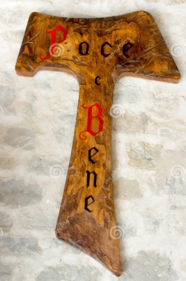St Antonius van Egypte (251-356 n.Chr.) droeg een kruis in de vorm van een Tau op zijn habijt. En in november 1215, tijdens de beraadslagingen van het Vierde Lateraans Concilie in Rome, luisterde Franciscus van Assisi hoe paus Innocentius III de Tau verhief tot symbool van Christelijk geloof en trouw. De Paus zei: "De Tau heeft precies dezelfde vorm als het kruis waaraan onze Heer op Golgotha werd gekruisigd, en alleen zij die hun vlees hebben vernederd en hun leven hebben aangepast aan de gekruisigde Heiland, zullen met dit teken worden gemerkt en genade ontvangen." Tau is de laatste letter van het Hebreeuwse alfabet en werd symbolisch gebruikt in het Oude Testament (Ezechiël 9:4). De Tau is het teken dat op de voorhoofden van de armen van Israël is geplaatst en hen redt van uitroeiing.