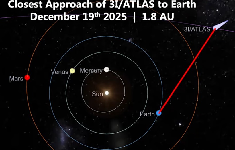 Op 19/12/2025 komt 3I/Atlas het dichtst bij de aarde: