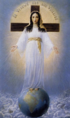 Heer Jezus Christus, Zoon van de Vader, zend nu Uw Geest over de aarde. Laat de Heilige Geest wonen in de harten van alle volkeren, opdat zij bewaard mogen blijven voor verwording, rampen en oorlog. Moge de Vrouwe van alle Volkeren, de heilige Maagd Maria, onze Voorspreekster zijn. Amen.