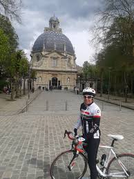 en trapt zijn pedaal kapot dus wij op zoek naar een fietsenmaker en die vinden wij in Wilsele en die is nog open terwijl die hem