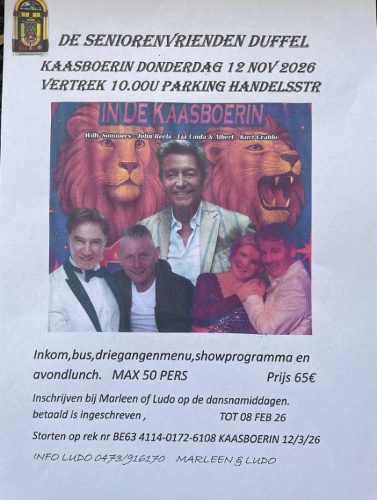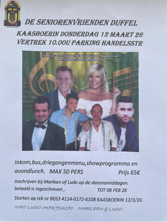 tot 19.00u in de zaal Forum te Duffel.