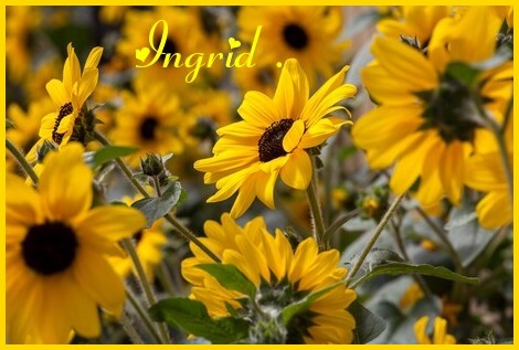 een vriendelijke groet en geniet van de zon die er weer bij zal zijn . liefs Ingrid.