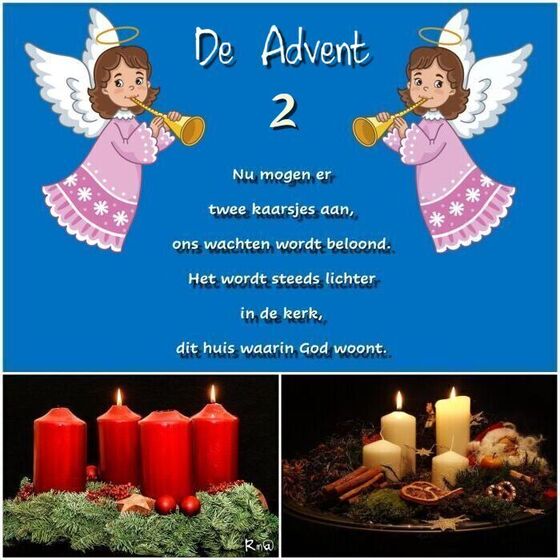 Nieuwe week ,, 2 kaarsje van de advent aan gestoken , op weg naar kerstmis .
