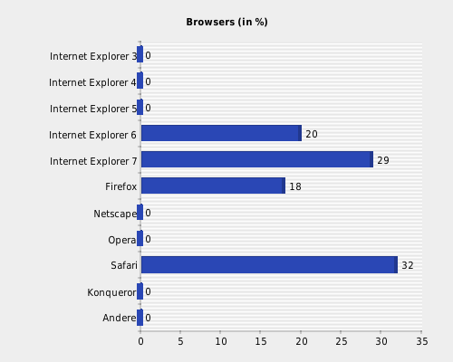Op deze pagina krijgt u statistieken van de technische gegevens van uw bezoekers. Hier krijgt u een antwoord op bijvoorbeeld: Met welk soort computer surfen mijn bezoekers? Met welke browser bezoekt men mijn website? Hebben de bezoekers hun cookies op- of afstaan? Wat met het op of afstaan van Javascript? Met welk besturingssysteem surfen mijn bezoekers? Heeft men Flash geïnstalleerd? Op deze en tal van andere vragen krijgt u op deze pagina een antwoord, telkens grafisch voorgesteld als de cijfers.