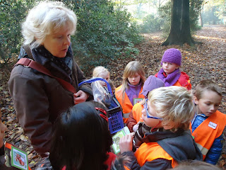 Woensdagmorgen deden we allemaal een extra sjaal en handschoenen aan, want we gingen een hele voormiddag op herfstwandeling. Onze gids was Marijke en zij toverde ons om in allerlei dieren zoals een uil, konijn, eekhoorn,... En over elk diertje leerden we heel wat dingen bij.