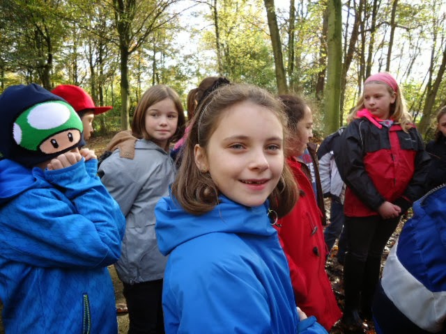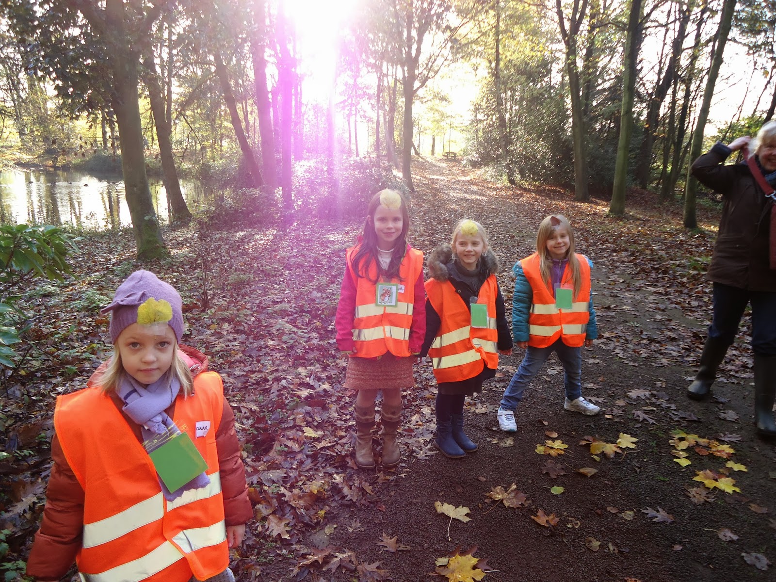 Woensdagmorgen deden we allemaal een extra sjaal en handschoenen aan, want we gingen een hele voormiddag op herfstwandeling. Onze gids was Marijke en zij toverde ons om in allerlei dieren zoals een uil, konijn, eekhoorn,... En over elk diertje leerden we heel wat dingen bij.