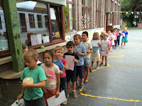 Na een gezellige picknick wandelden we te voet naar de school van toen. Daar ontdekten de kinderen dat de school van 100 jaar geleden toch wel heel anders was dan nu.