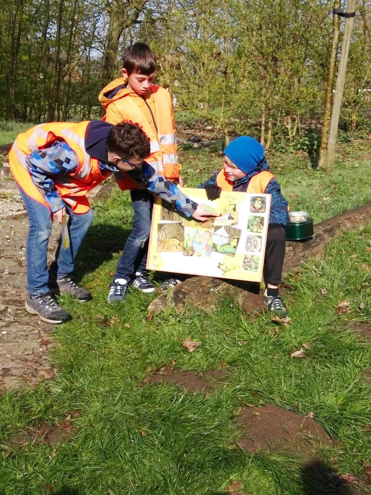 De zon was van de partij. Achter de bibliotheek konden we er volop van genieten terwijl we waterdiertjes opvisten. De kinderen genoten met volle teugen. We eindigden de namiddag met een leuk spel rond de voedselpiramide.