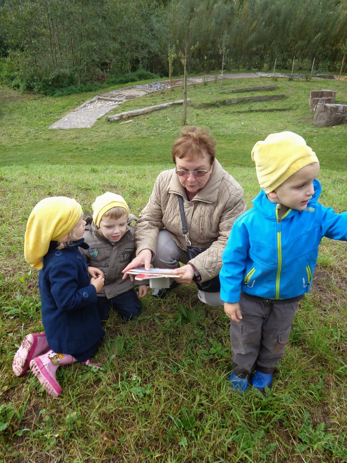 Woensdagmorgen deden we allemaal een extra sjaal en handschoenen aan, want we gingen een hele voormiddag op herfstwandeling. Onze gids was Marijke en zij toverde ons om in allerlei dieren zoals een uil, konijn, eekhoorn,... En over elk diertje leerden we heel wat dingen bij.