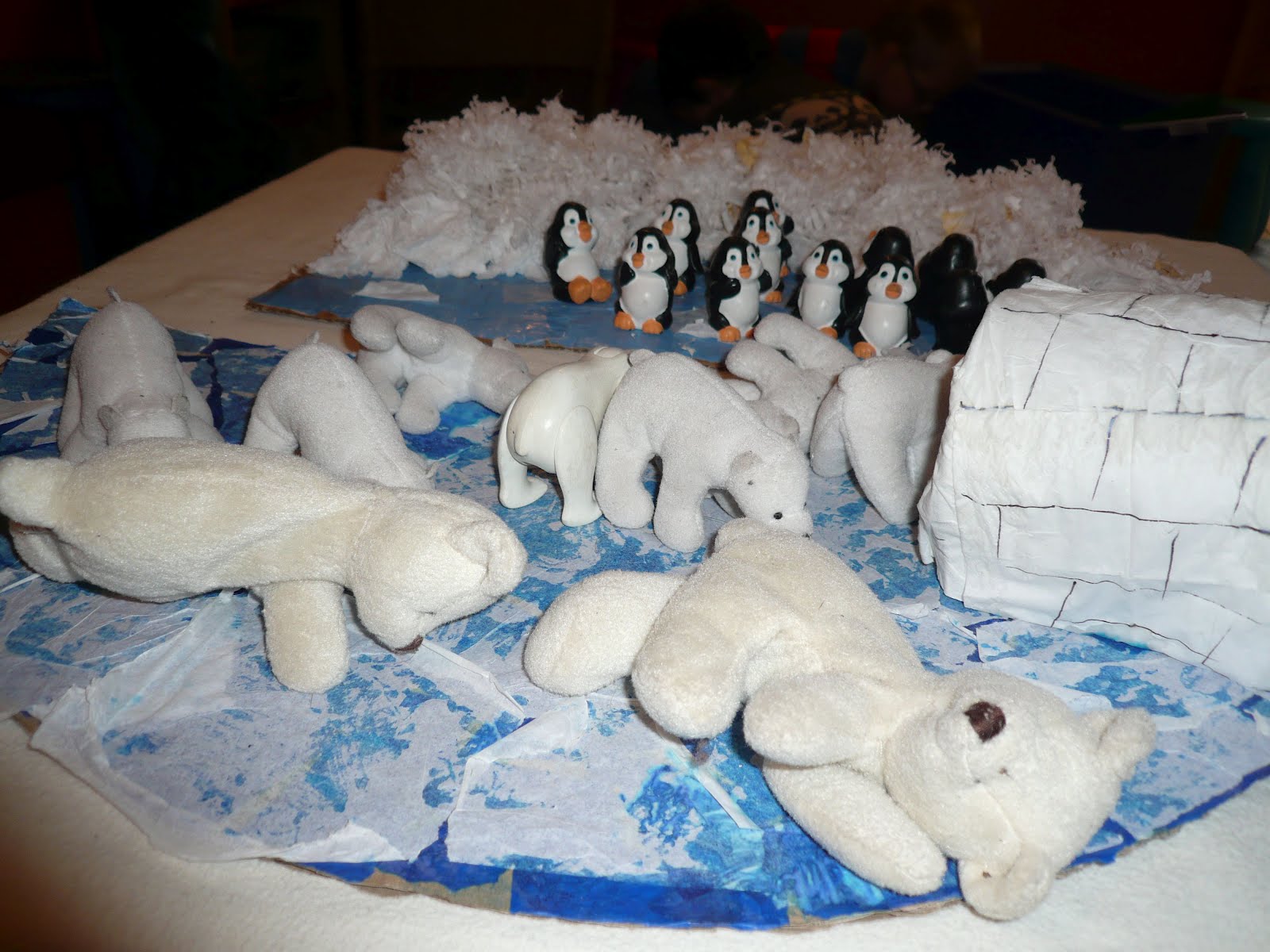 Deze week was het thema pinguïns en ijsberen. Op de Noordpool leven de ijsberen en op de Zuidpool de pinguïns.